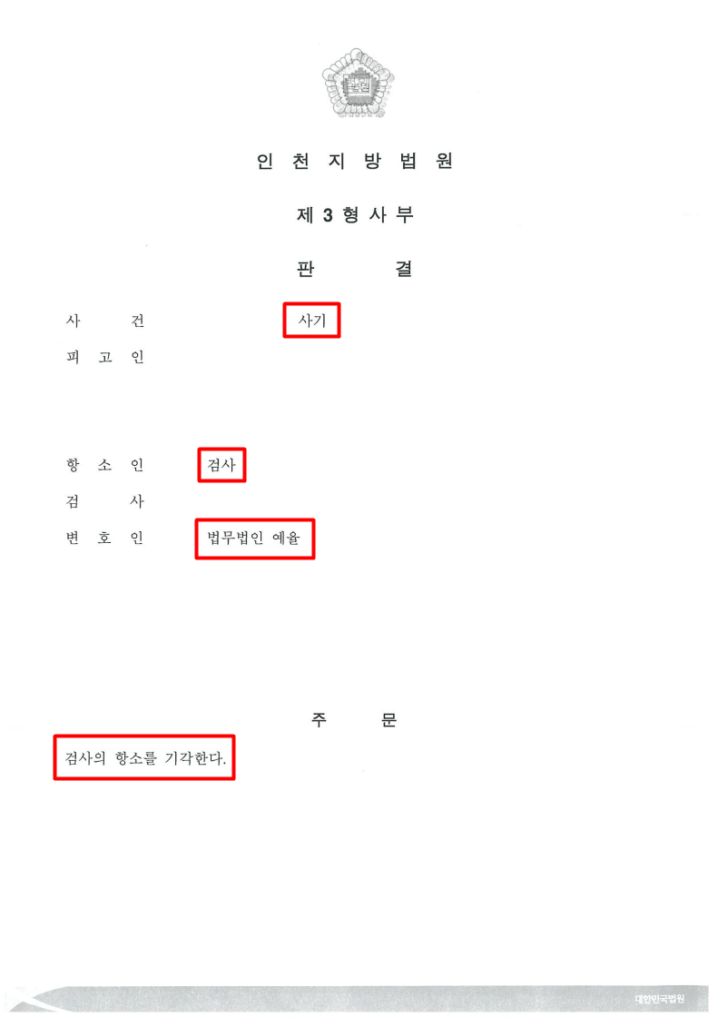 검찰의 항소를 기각으로 이끈 사례입니다.